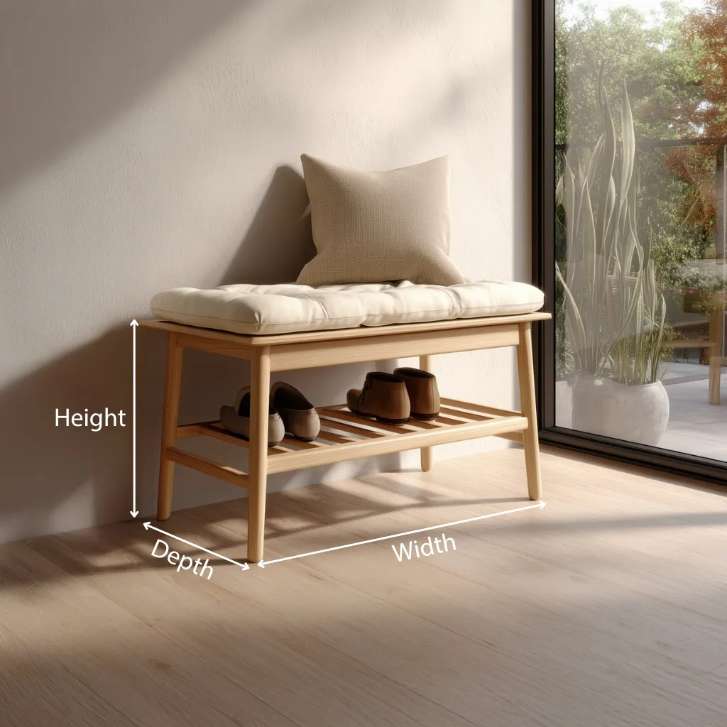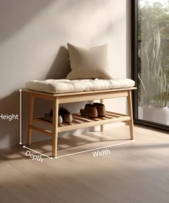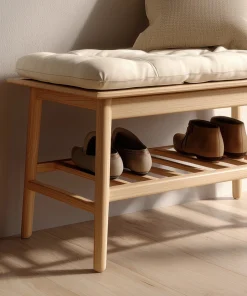 The Compact Wooden Entry Bench With Lower Shoe Shelf provides a simple seating solution combined with light storage. The padded top offers a comfortable surface for sitting, while the wooden frame maintains a clean, balanced structure suitable for everyday use.