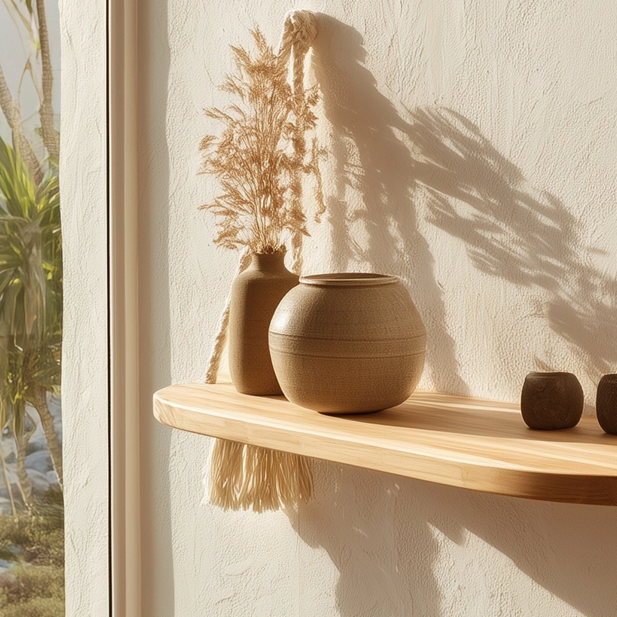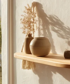 Designed for displaying small décor, ceramics, or accent objects, the shelf adds visual interest without overwhelming the wall. Its simple form and natural materials make it suitable for living spaces, bedrooms, or reading corners where calm and texture are desired.