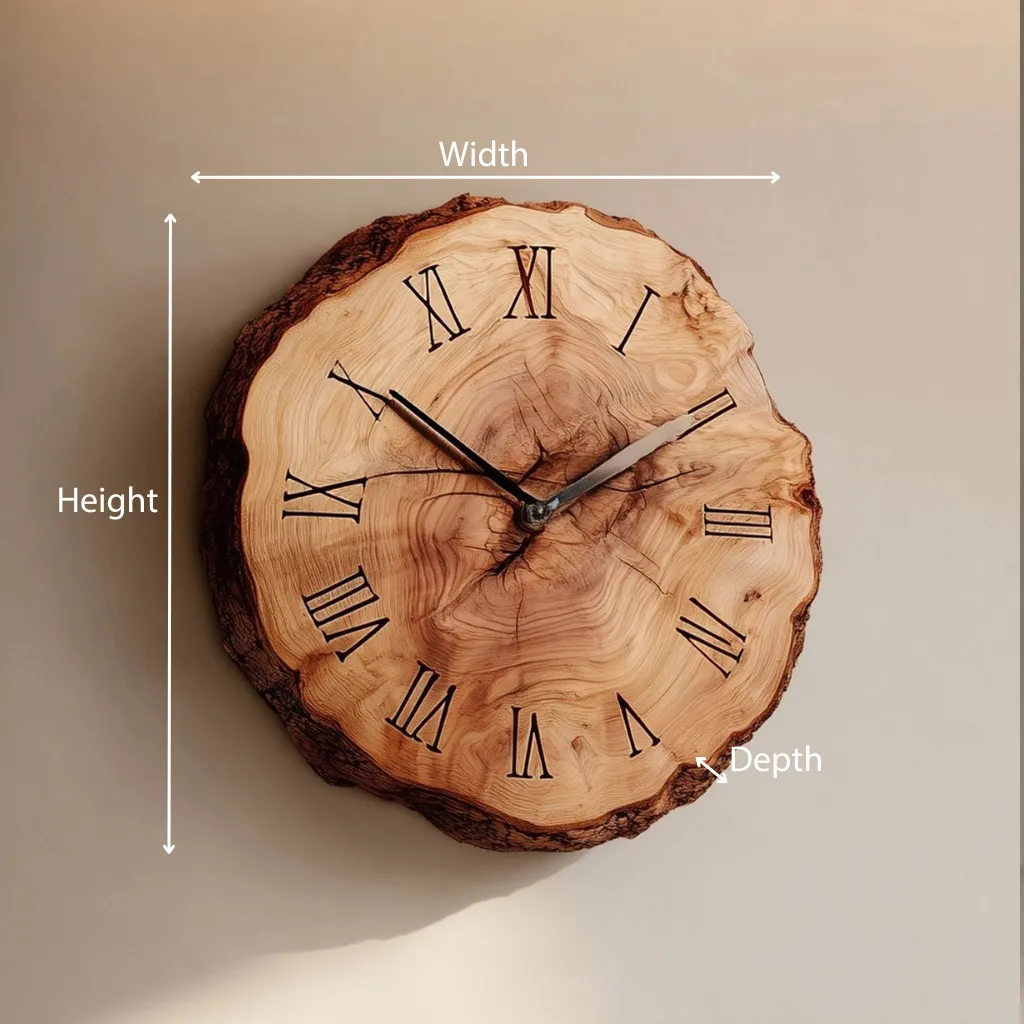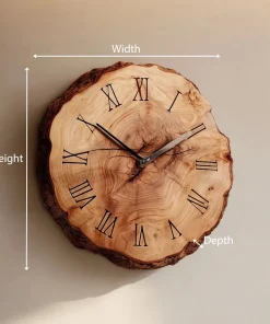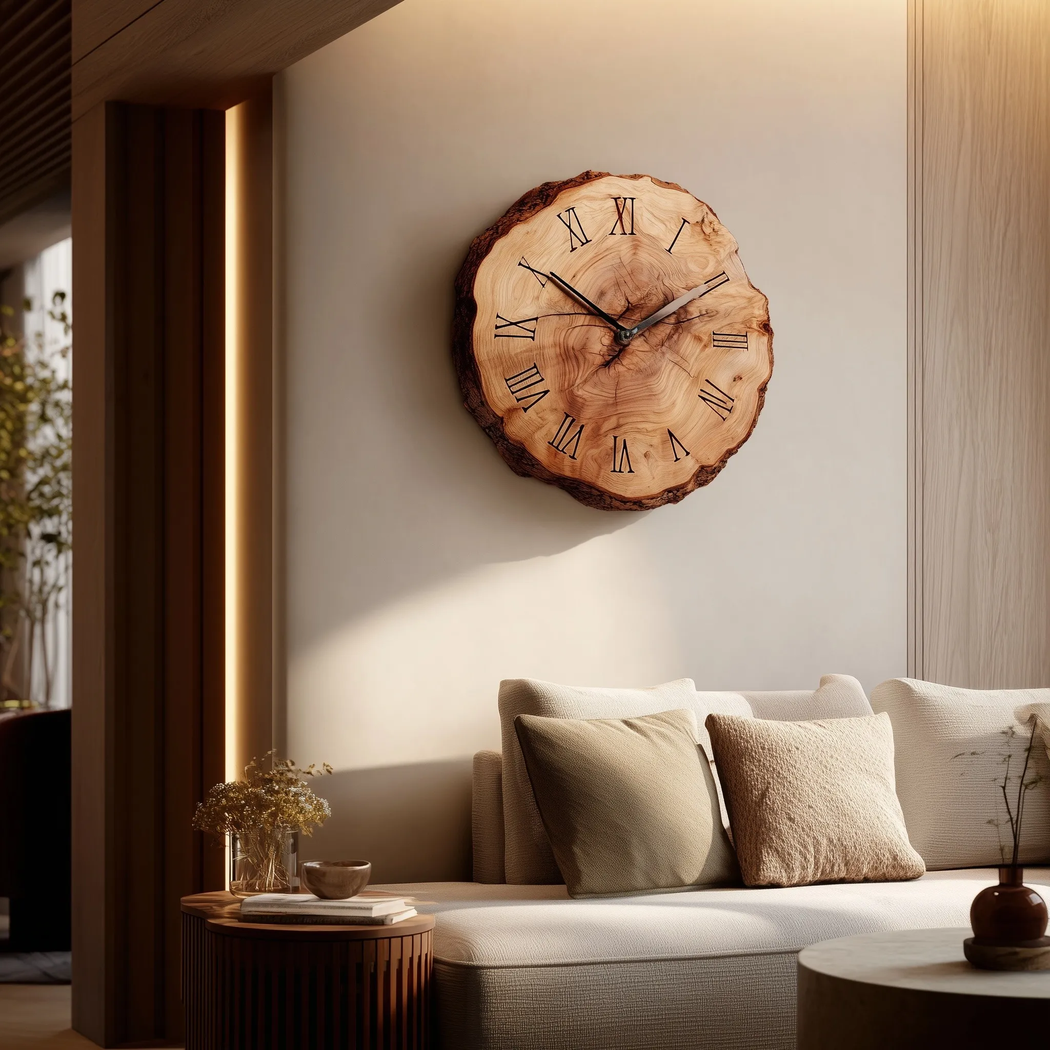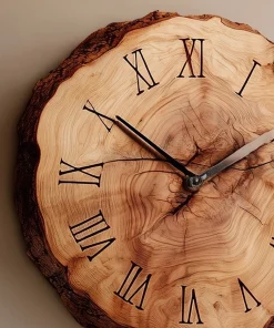 Natural Edge Wooden Slice Wall Clock with Roman Numerals