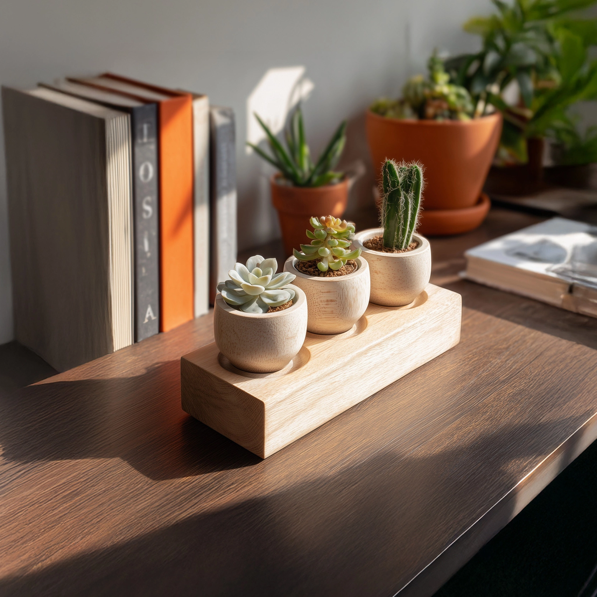 Ideal for desks, shelves, and window sills where compact styling is preferred.